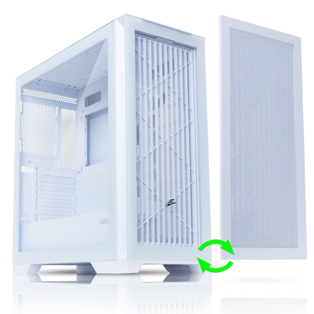 EVOLVEO Ptero Q2, 2x predný panel - sklo/mriežka, ATX skriňa - bielá